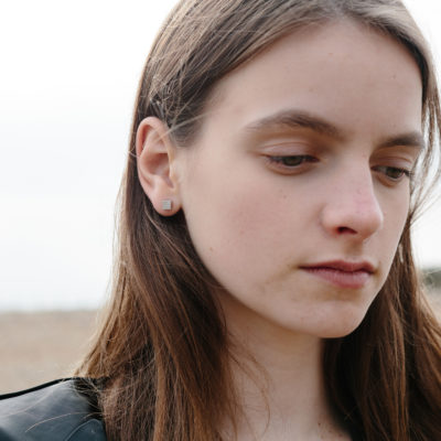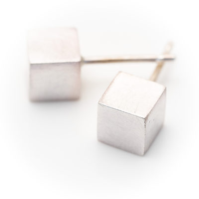 Simple square studs, which when worn naturally dip forward slightly showing the 3D view. These look great on their own as an everyday stud or grouped with any of the cube or box collections. These studs have a beautiful matt finish.