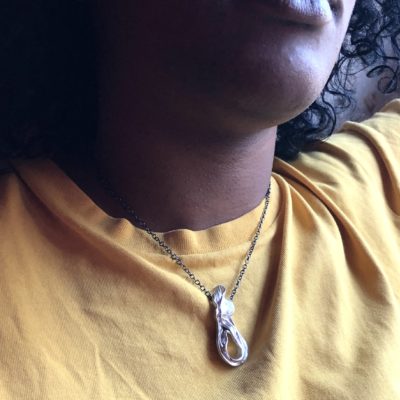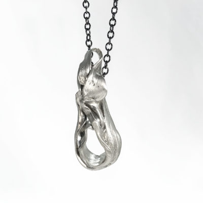 A sculptural and sinewy 100% recycled Sterling silver pendant.