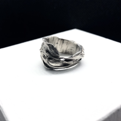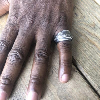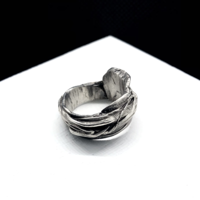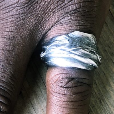 A sculptural and sinewy 100% recycled Sterling silver ring that wraps around your finger like a second skin. Featuring a subtle patina to accentuate the imprint of my skin on the surface of the piece.