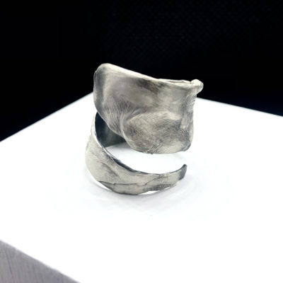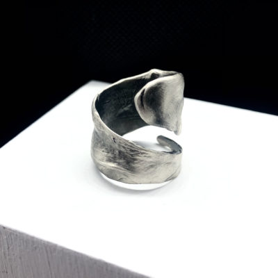 A sculptural and sinewy 100% recycled Sterling silver ring that wraps around your finger like a second skin. Featuring a subtle patina to accentuate the imprint of my skin on the surface of the piece.