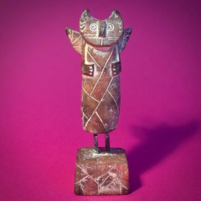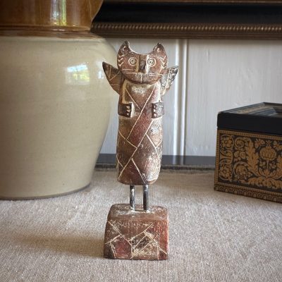 Smoke Fired Winged Cat No 7: ceramic sculpture