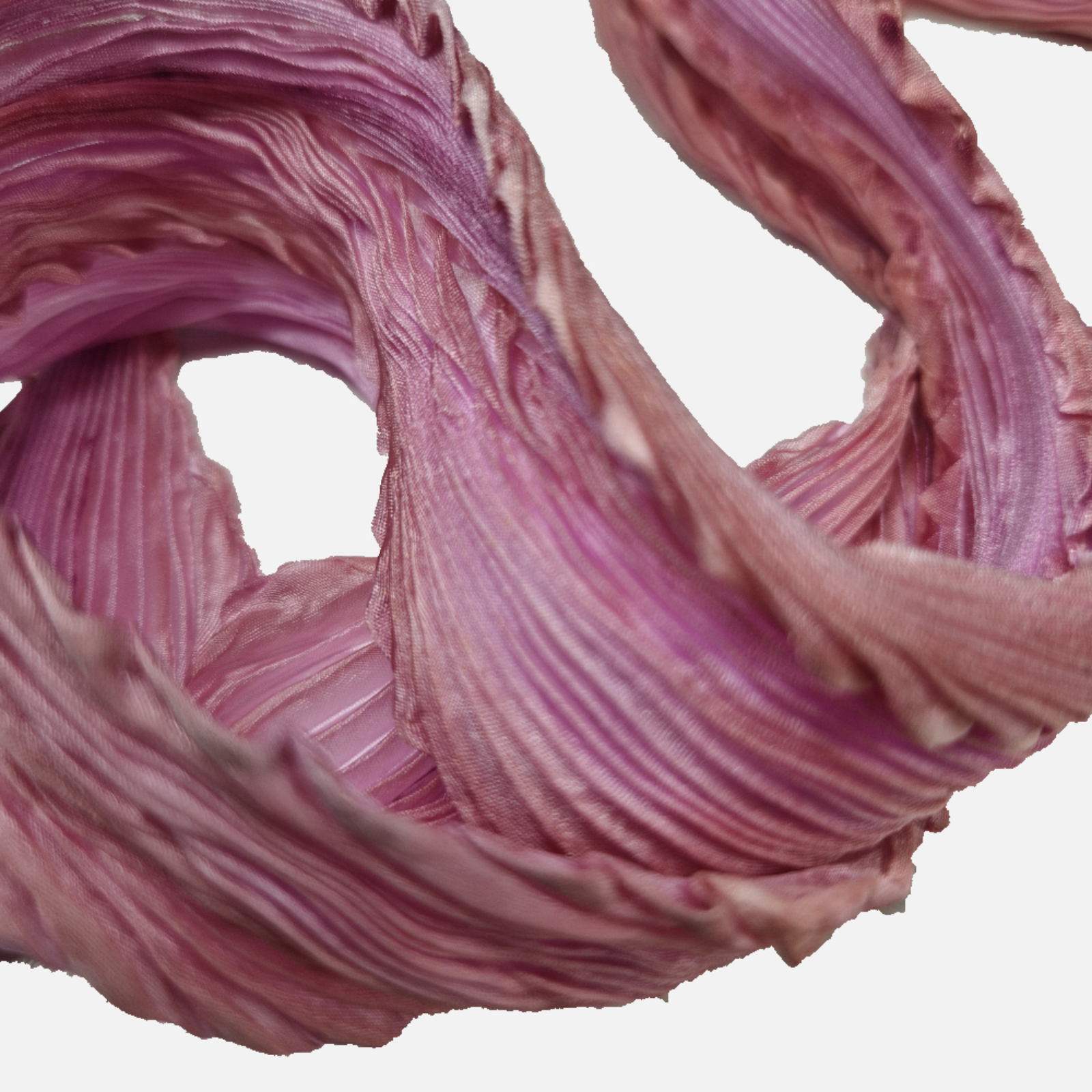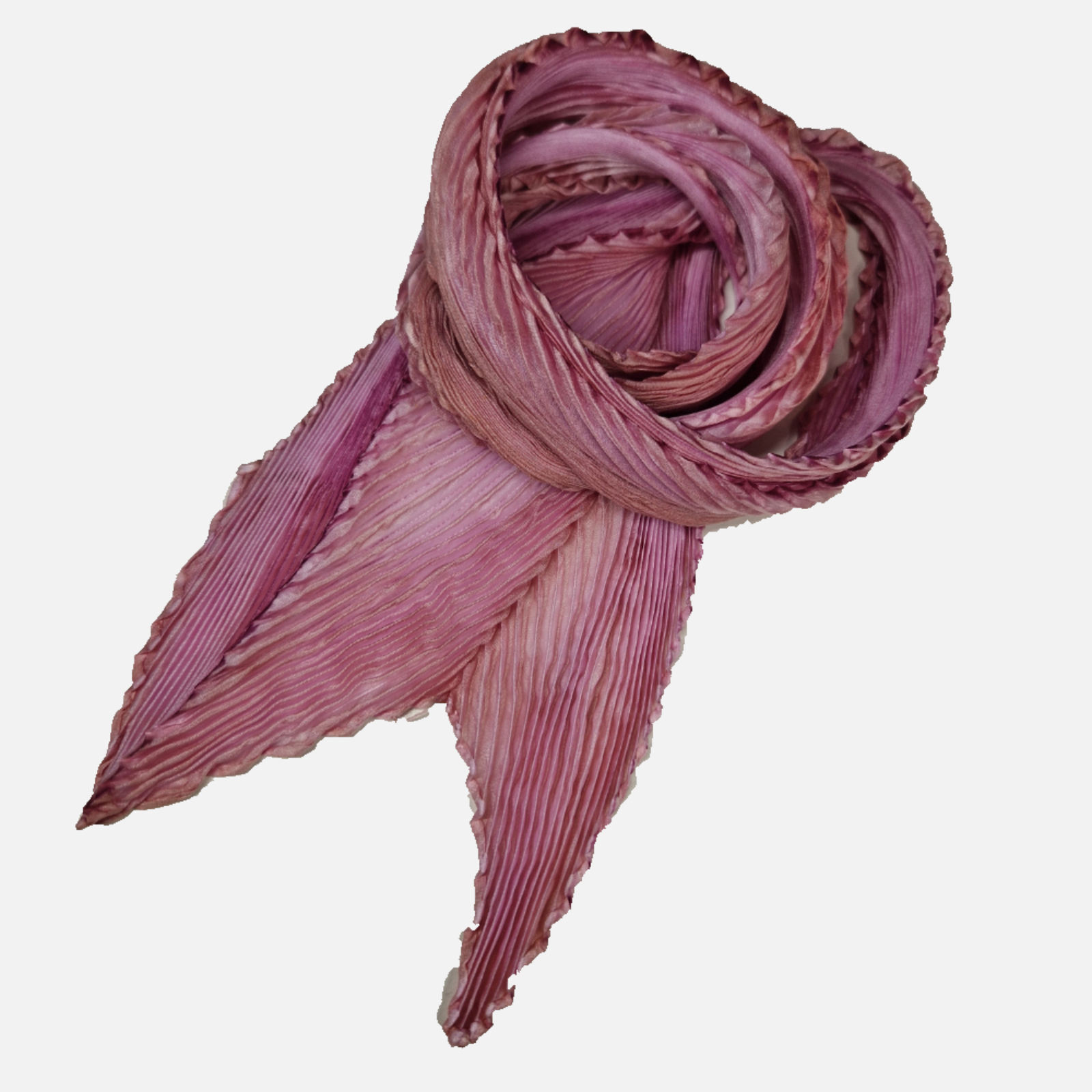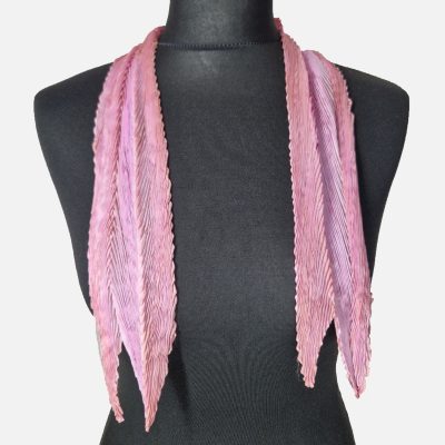 Under dyed in pale pink then over dyed in pale chestnut, the resulting Sophistication scarf is vary-coloured and utterly unique. It is finished with hand-rolled hems. Depending on how the scarf is worn, the pleats open or close, creating an ever-changing interplay of colour and making for an extremely versatile and beautiful accessory.
