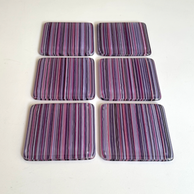 These bespoke fused glass coasters will look beautiful in any home of office. The combination of pinks and purples work beautifully together, each one is unique.