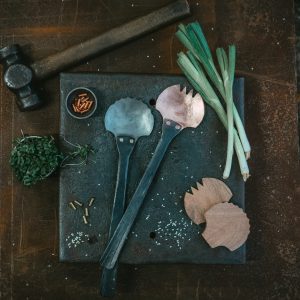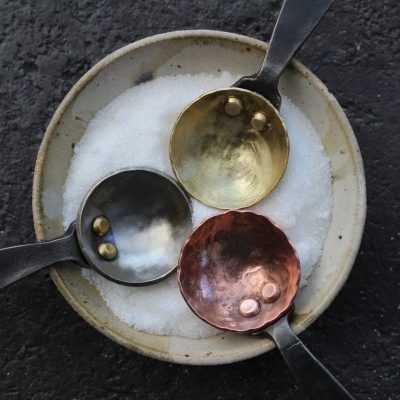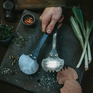 Our small sugar scoops are a joy to create for the world with them being small and ‘fiddly’ requiring each strike with the hammer to be incredibly precise, normally made in small batches at a time by head blacksmith Billy. Most of our scoops may look simple but that’s the joy of an efficient functional design bringing modern style to a historic art form. Bringing blacksmithing into the modern day is something we strive for so all can hopefully appreciate the craft we love, it requires new design and ideas on ancient skills to achieve this. They may look simple but each scoop goes through 35 different processes to result in its streamline final form, they are a challenge of the eye, mind and heat all made by hand at a hammer and anvil.