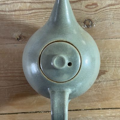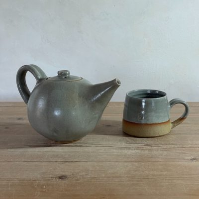 Each teapot is made individually and the exterior glaze is a smooth matt ‘stone’ glaze reminiscent of the stone walls of Teesdale – a rich grey with hints of blue and green. The interior is my silky ‘chun’ glaze.