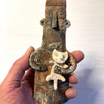 A Cat Lover: I had intended to make a fairly accurate copy of a prehistoric plank figure from Cyprus . Then I strayed. I’m sure that lots of ancient Cypriots liked cats. That’s my excuse for this duo.