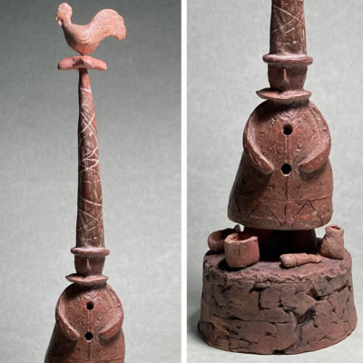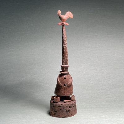 “I work with a variety of clays into which I often add other fragments of material. These ”inclusions” plus the use of oxides and multiple firings add to the alchemy and often give the clay a distressed or patinated surface.”