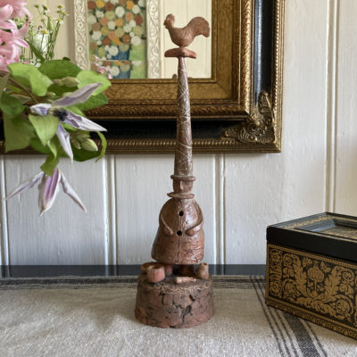 A love of whimsy, folk art, religious and tribal art and his background as an illustrator, all go into the mix.