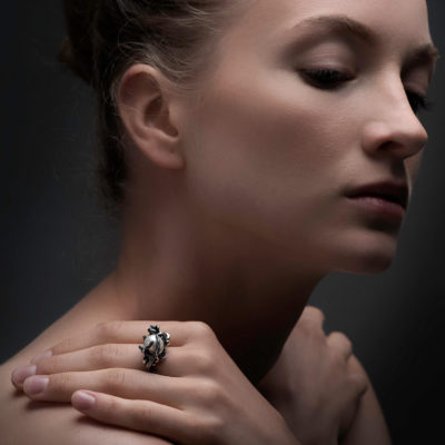 The Treasure of the Abyss pearl solitaire ring, is handcrafted with love and passion in England by Belgian designer-maker Julie Nicaisse. The London based brand, Julie Nicaisse Jewellery, influenced by the magnificent beauty hidden in every aspect of Mother Nature, works the finest metal using traditional techniques and ecofriendly methods. Inspired by the flora inhabiting the depths of the oceans, embracing a large creamy white fresh water pearl, the Treasure of the Abyss ring is crafted out of 925 sterling silver left in its raw form and adorned with subtle 9 ct yellow gold bead. The organic outlines of this exquisite masterpiece fits perfectly on a hand holding a flute of sparkling elixir, making this ring an excellent choice for any special occasions. This item is hallmarked by the London assay office, to guarantee the metal content, year of manufacture and certified it was made by Julie Nicaisse Jewellery.