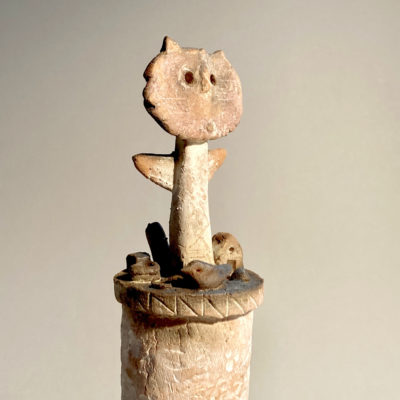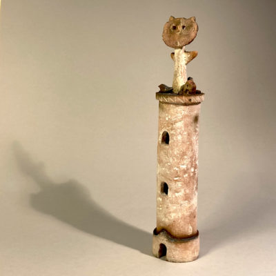 “I work with a variety of clays into which I often add other fragments of material. These ”inclusions” plus the use of oxides and multiple firings add to the alchemy and often give the clay a distressed or patinated surface.”