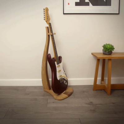 Our beautiful handmade guitar stand is truly unique and makes for a very special way to display your treasured guitar.
