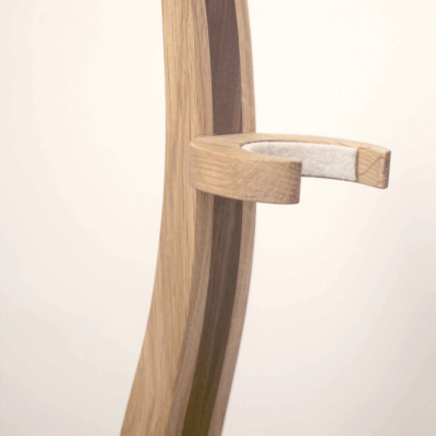 Made from a selection of hard-woods, the neck curves up to a felt-lined holder at the top to prtect the neck of the guitar. The base is shaped to give excellent stability and then we inset a soft pad and cover that with real leather to protect the base of your guitar.